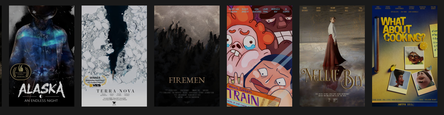 Les projets de fin d’études des étudiants ARTFX ont fait l’objet de près de 1 000 sélections par des festivals internationaux. Ils ont été récompensés par 1 victoire aux VES Awards en 2019 et 2 Genie Awards du Meilleur film étudiant (2018 et 2021) au Paris Images Digital Summit (PIDS).