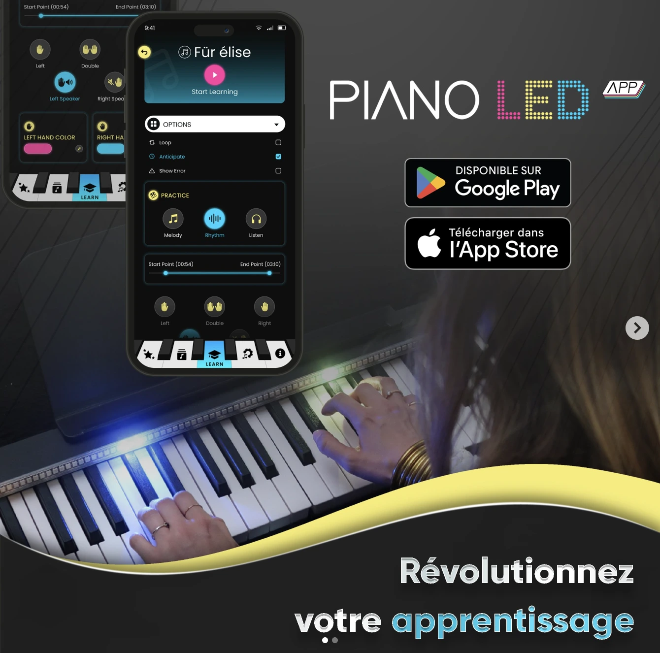 Rendre l’apprentissage du piano accessible au plus grand nombre, avec un système de bande led lumineuse et s’affranchir des partitions de solfège ! C’est ce que propose Piano Led !