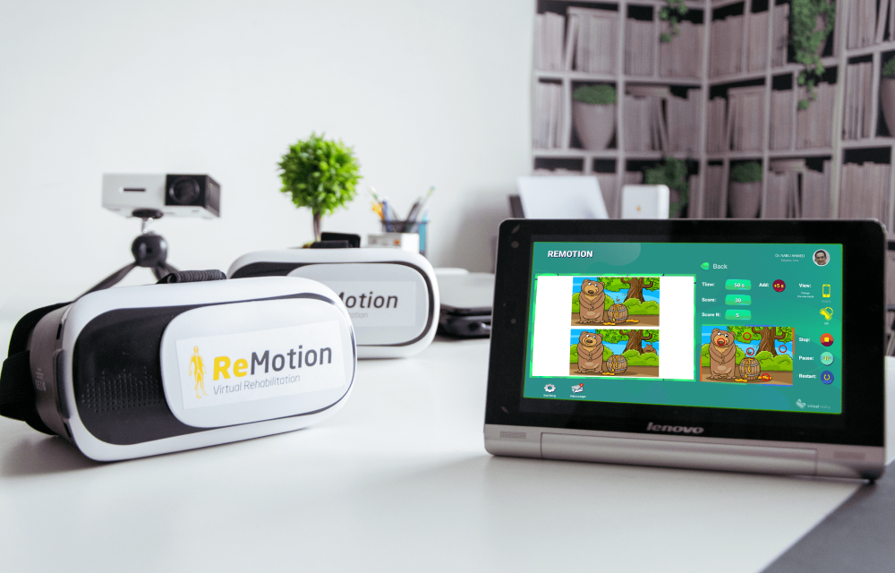 Nous proposons des « Serious Games » et des exercices à but thérapeutique, utilisables en mode immersion simple (sans casque VR) ou immersion totale (avec casque VR) couplée avec un système de capture de mouvements qui permet de retranscrire en temps réel les gestes du patient dans le monde virtuel. Ce système permet au thérapeute d’évaluer et rééduquer les patients en temps réel, adapter et ajuster les exercices durant les séances suivant l’amélioration du patient, qui de son côté pourra exercer chez le cabinet du thérapeute ou à sa maison tout en étant télé-assisté par ce dernier.